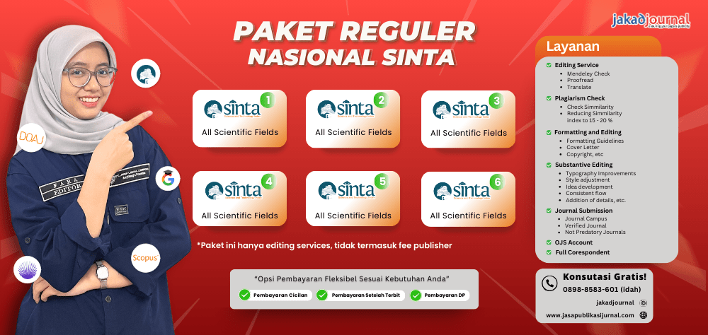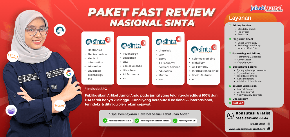Satu satunya jasa publikasi jurnal sinta kami untuk syarat kelulusan, syarat pengajuan lektor kepala maupun guru besar. Kami memiliki layanan publikasi jurnal nasional 100% LOA cepat yang relevan untuk kepentingan, peneliti, akademisi, dosen dan perusahaan dalam jurnal yang bereputasi nasional & internasional, terindeks & ditinjau oleh rekan sejawat.